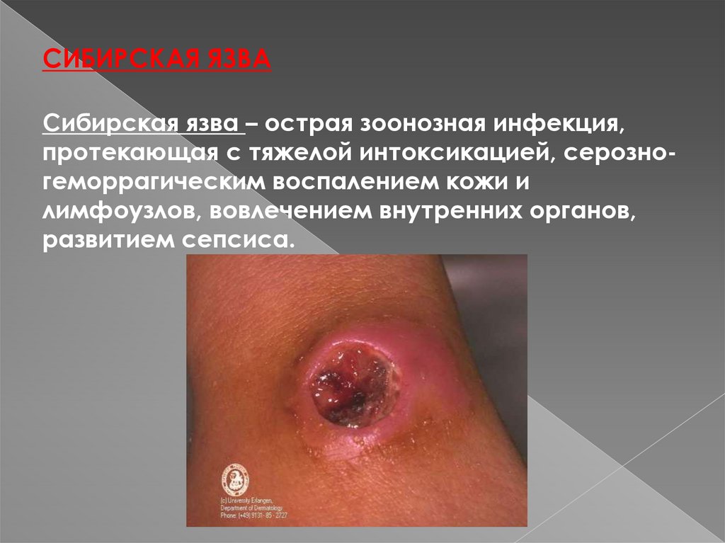 СИБИРСКАЯ ЯЗВАСибирская язва – острая зоонозная инфекция,