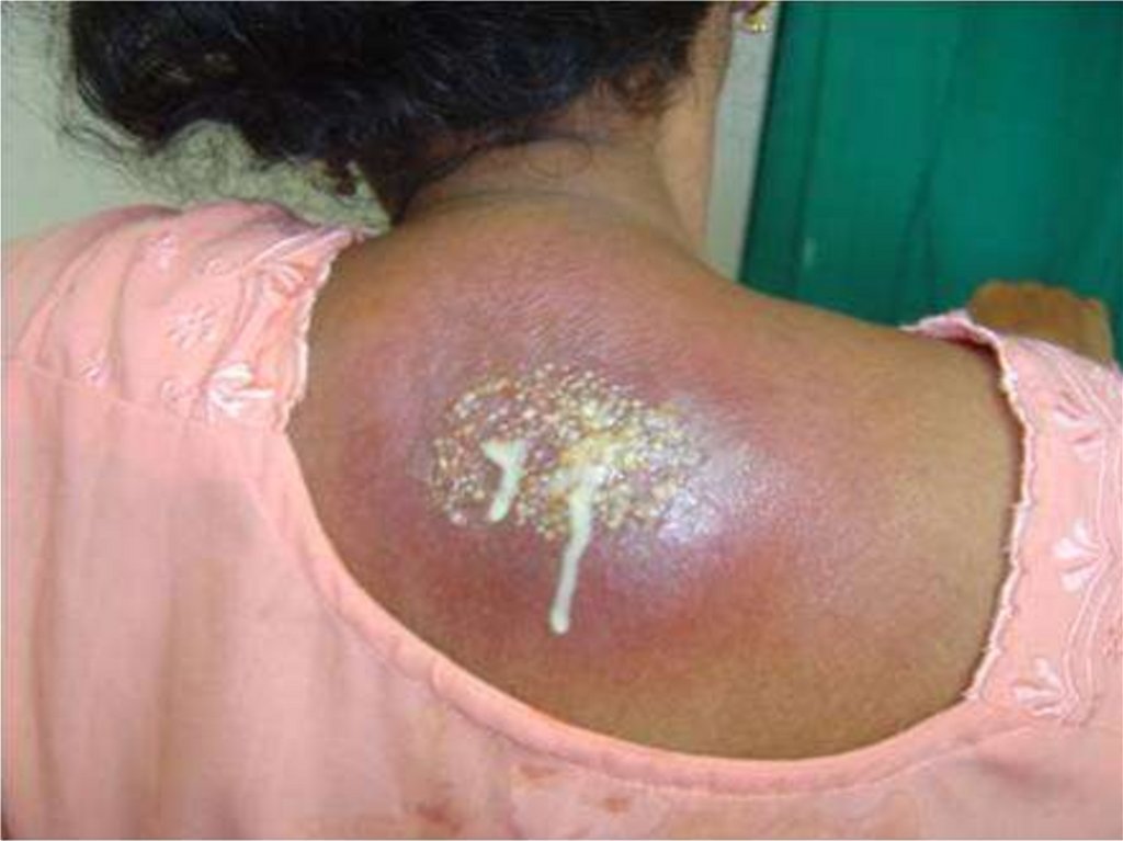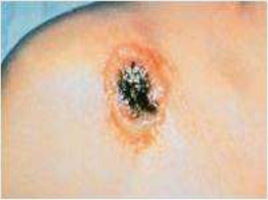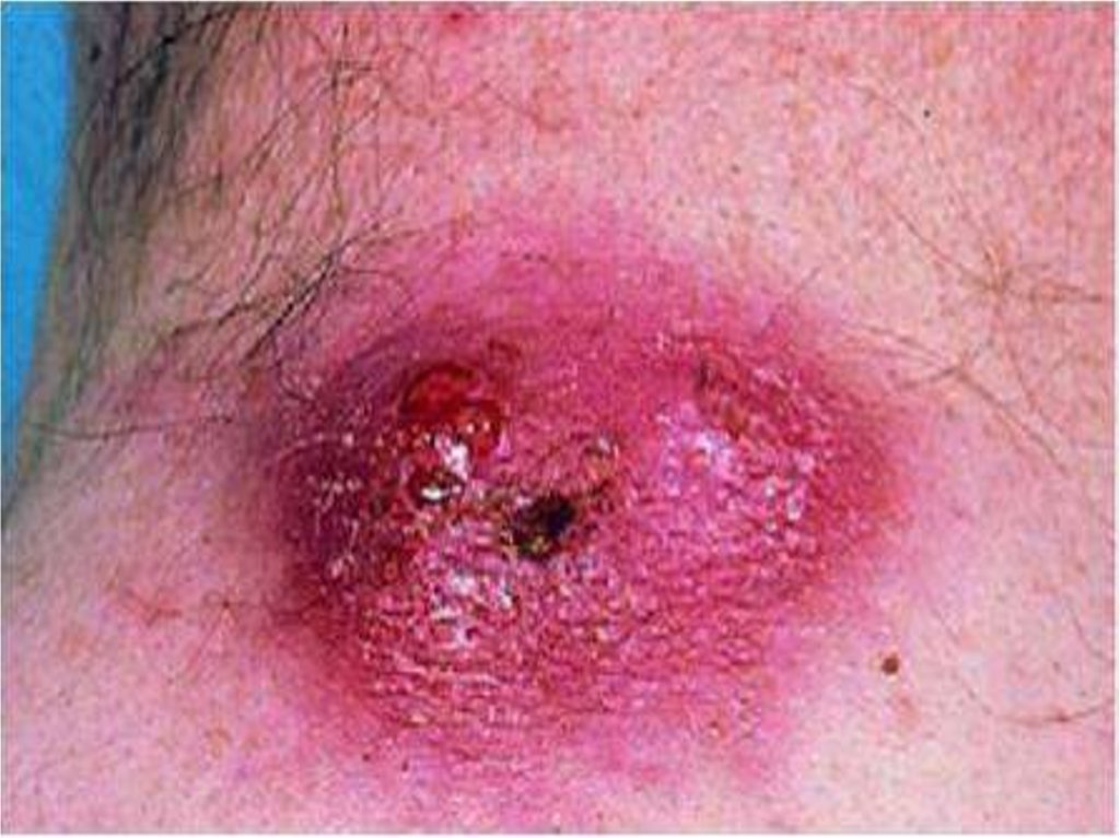Инкубационный период от нескольких часов до 8 дней (чаще 2-3 дня).- Кожная форма. Обычно появляется одиночный карбункул, но иногда их количество