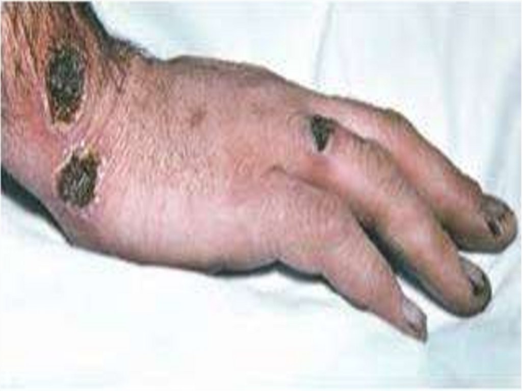 протекающая с тяжелой интоксикацией, серозногеморрагическим воспалением кожи и