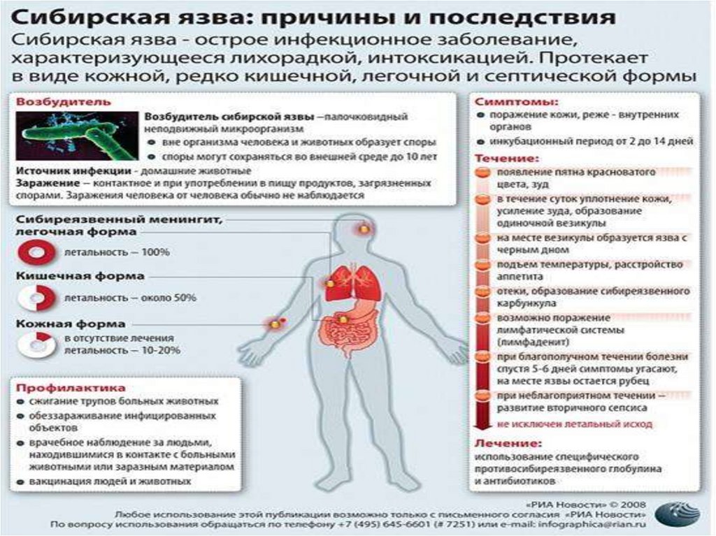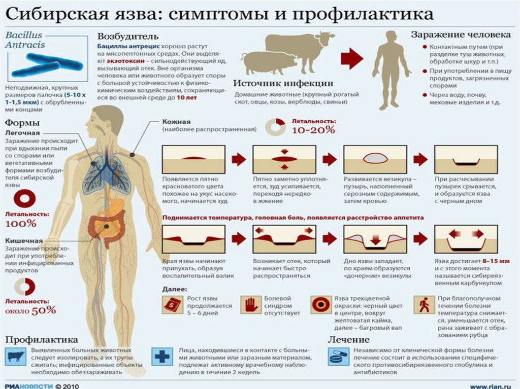 - Кишечная форма сибирской язвы характеризуется общей интоксикацией,