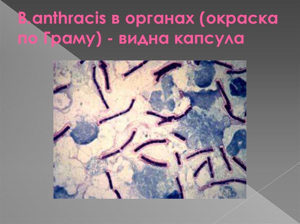 B.аnthracis в органах (окраскапо Граму) - видна капсула