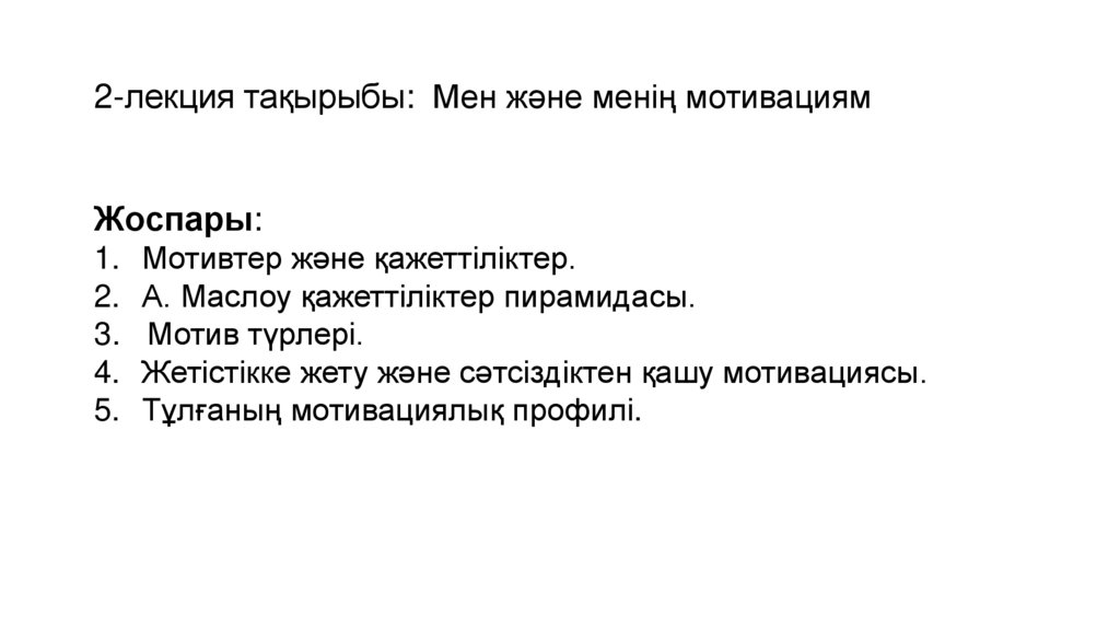 2-лекция тақырыбы: Мен және менің мотивациямЖоспары: