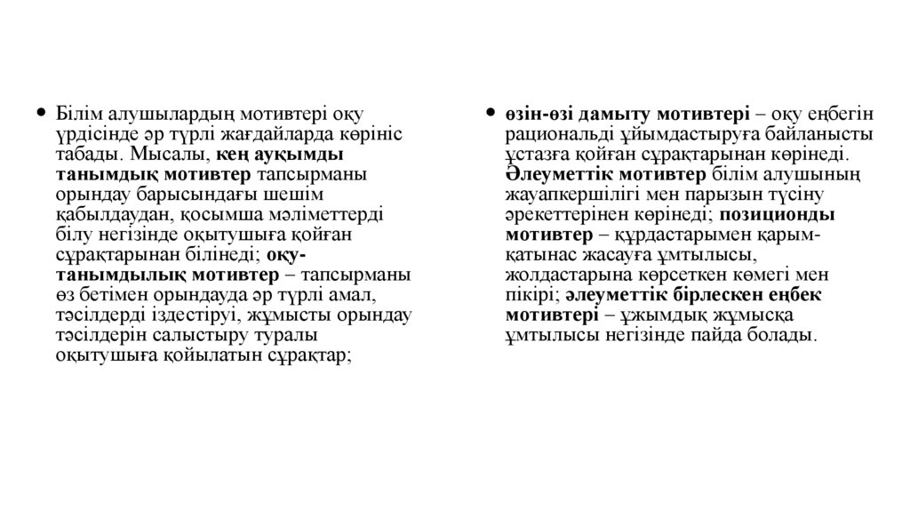 Білім алушылардың мотивтері оқуүрдісінде әр түрлі жағдайларда көрініс