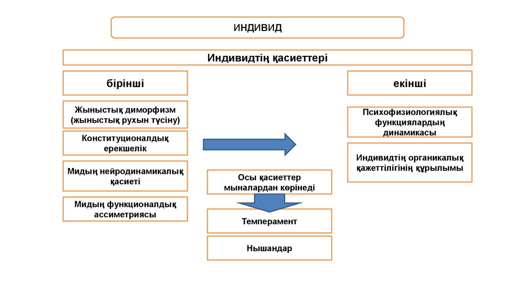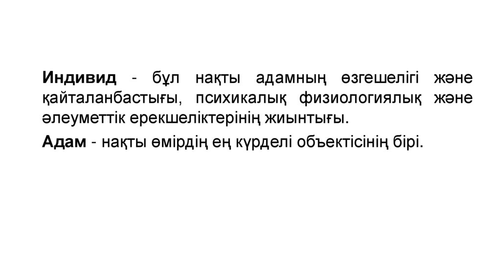 Индивид - бұл нақты адамның өзгешелігі жәнеқайталанбастығы, психикалық физиологиялық және