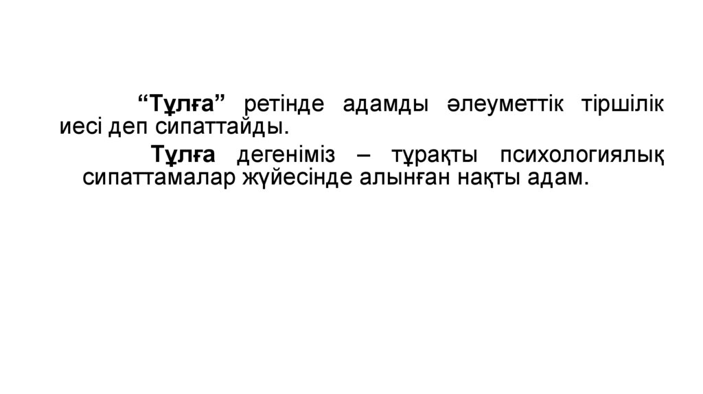 “Тұлға” ретінде адамды әлеуметтік тіршілікиесі деп сипаттайды.