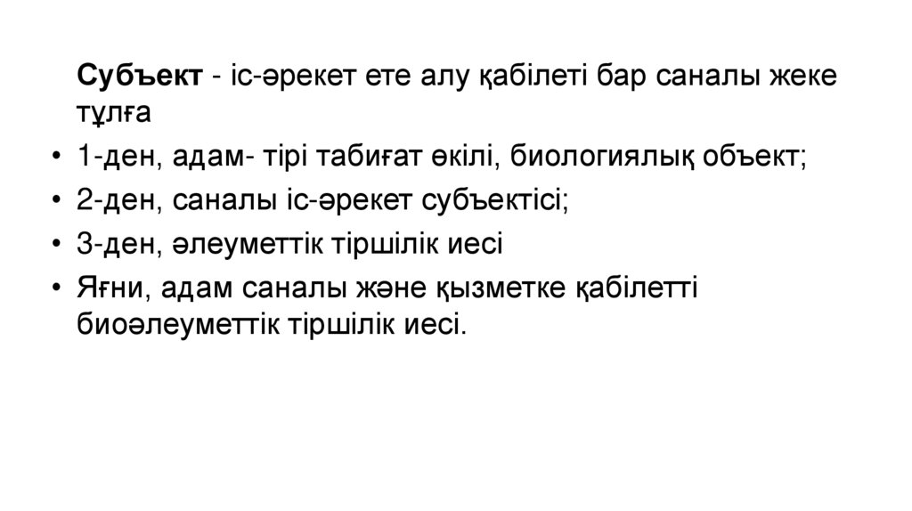 Субъект - іс-әрекет ете алу қабілеті бар саналы жекетұлға