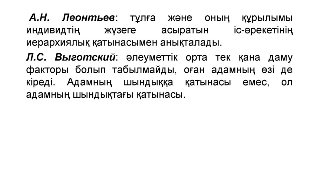 А.Н. Леонтьев: тұлға және оның құрылымыиндивидтің