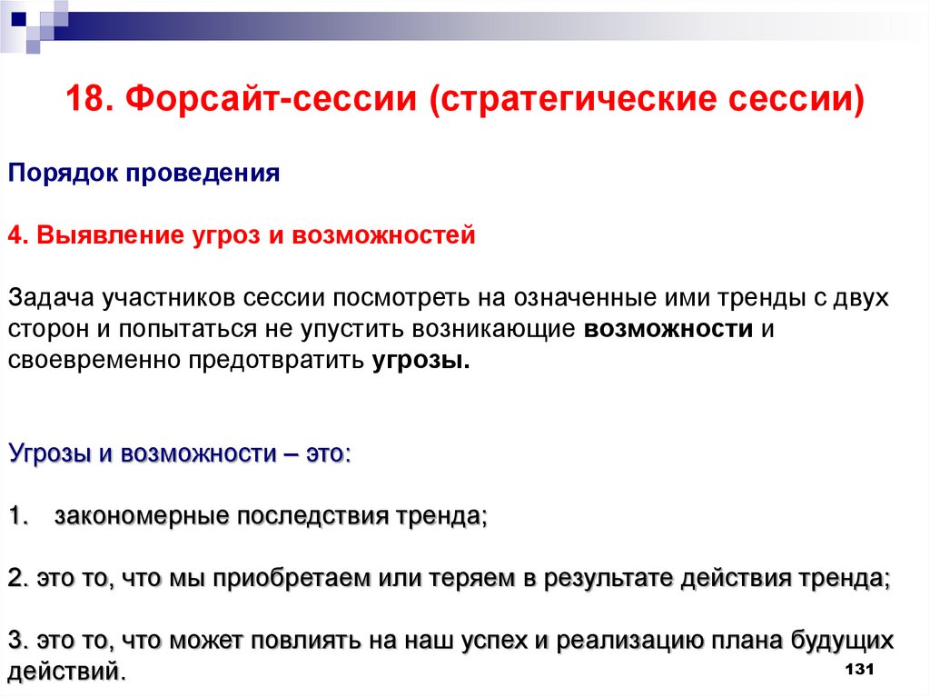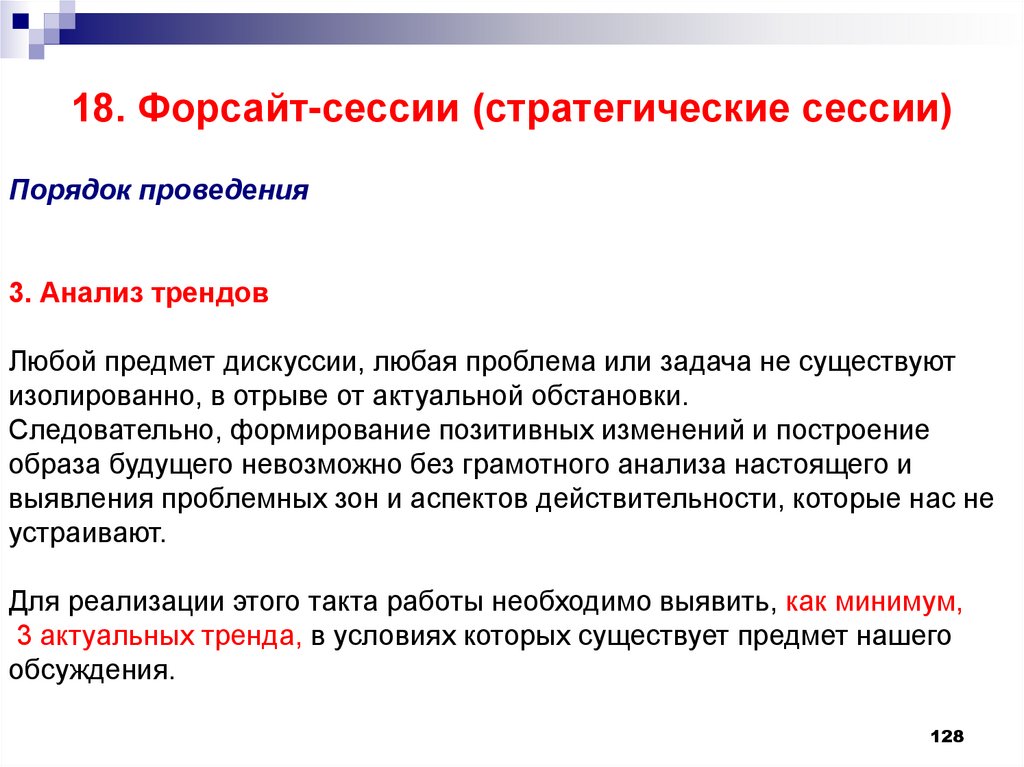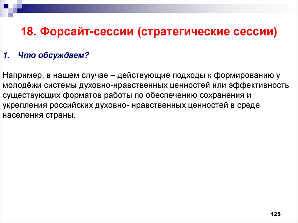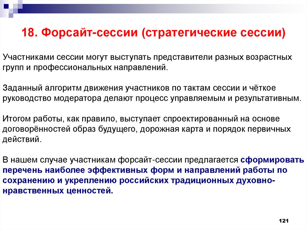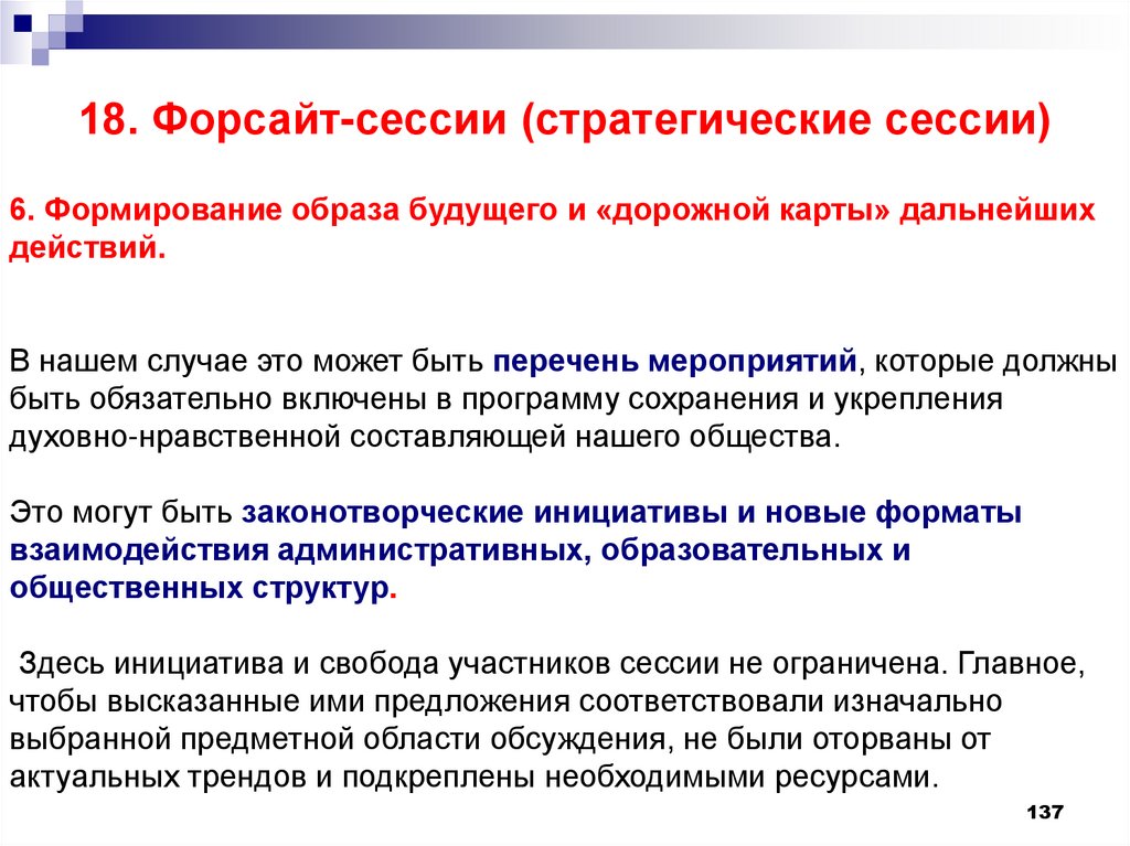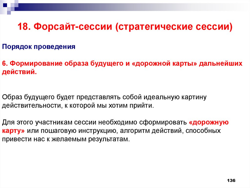18. Форсайт-сессии (стратегические сессии)6. Формирование образа будущего и «дорожной карты» дальнейших