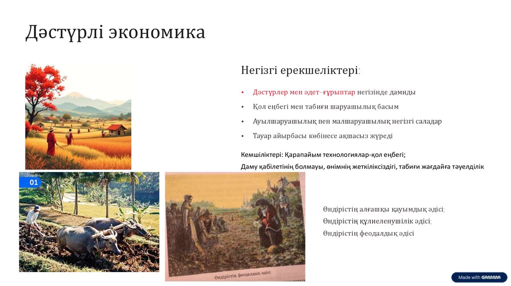 Дәстүрлі экономикаНегізгі ерекшеліктері: