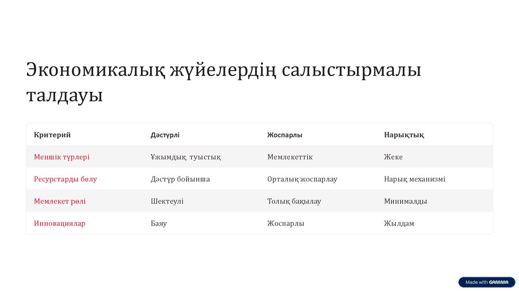 Қазіргі заманғы экономикалық жүйелердің көп түрлілігі мен олардың