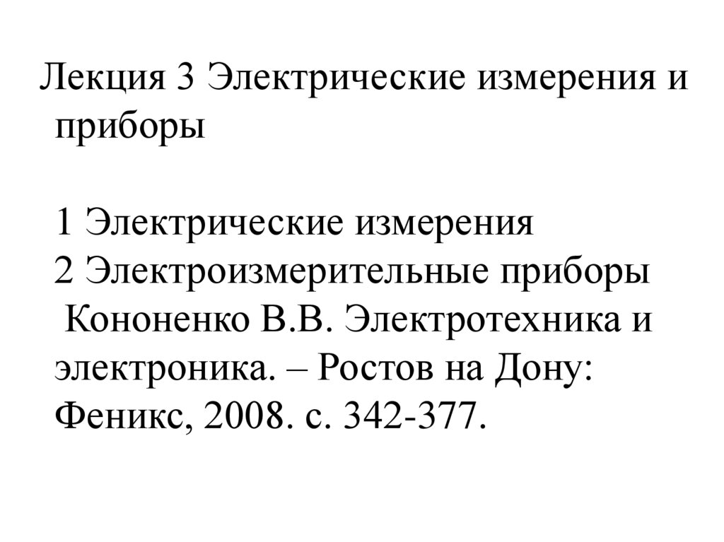 1. Лекция 3 Электрические измерения и приборы 1 Электрические измерения 2 Электроизмерительные приборы Кононенко В.В.
