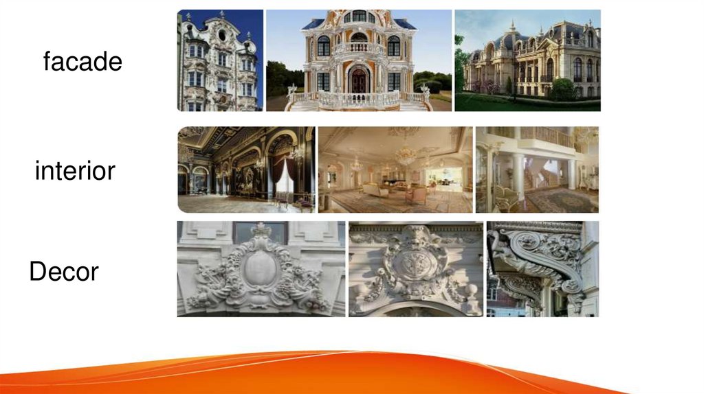 ornamentation of surfaces with broken pediments and cornices, curls, volutes and