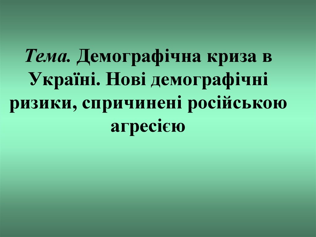1. Тема. Демографічна криза в Україні. Нові демографічні ризики, спричинені російською агресією
