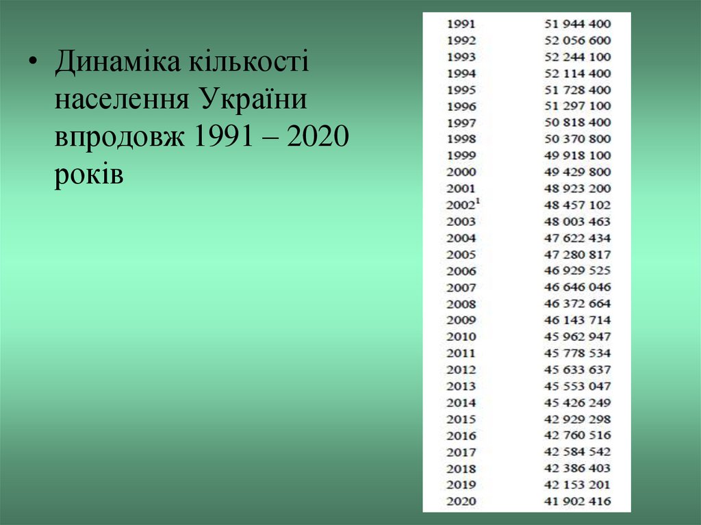 • Динаміка кількостінаселення України