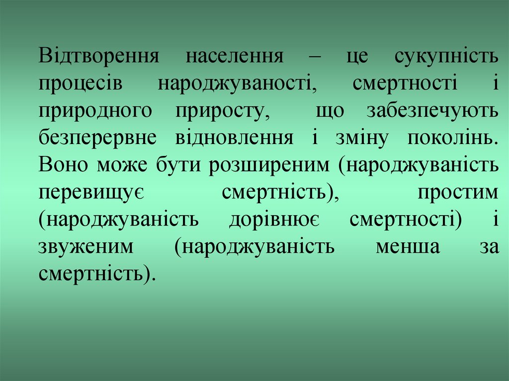 Відтворення населення – це сукупністьпроцесів
