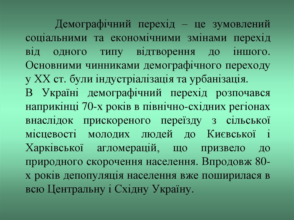 Демографічний перехід – це зумовленийсоціальними та економічними змінами перехід