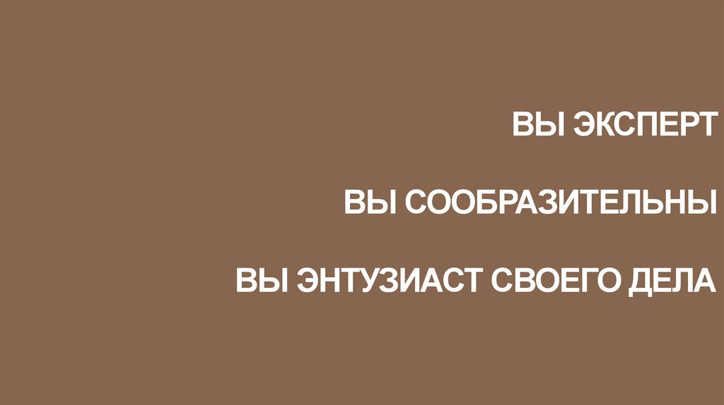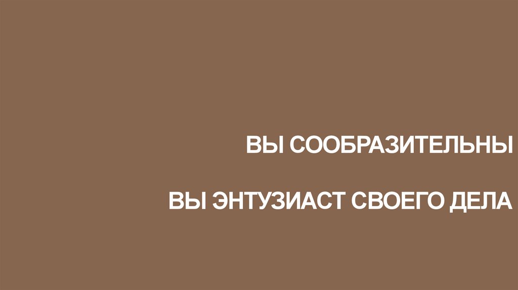 ВЫ СООБРАЗИТЕЛЬНЫВЫ ЭНТУЗИАСТ СВОЕГО ДЕЛА