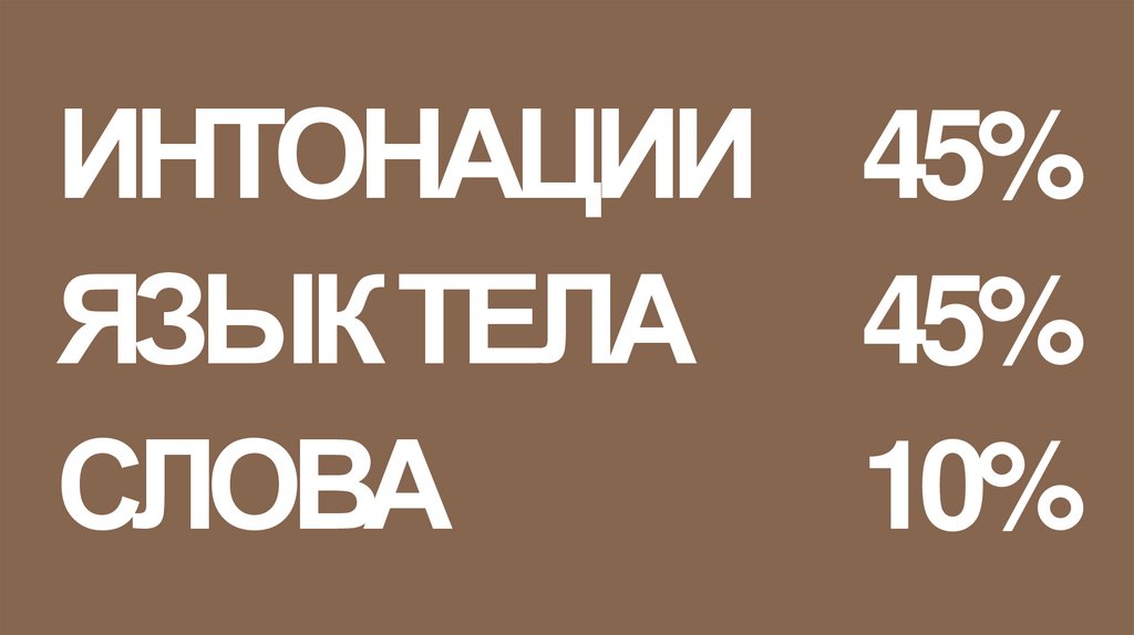 ИНТОНАЦИИ 45%ЯЗЫК ТЕЛА 45%