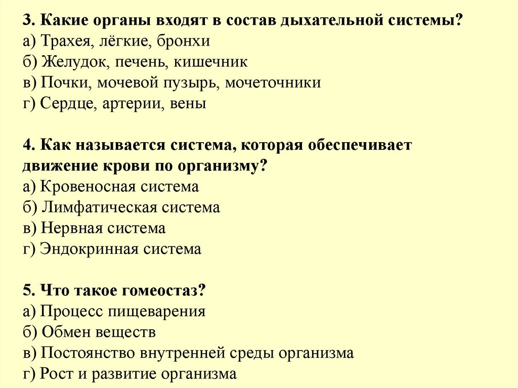 3. Какие органы входят в состав дыхательной системы?а) Трахея, лёгкие, бронхи