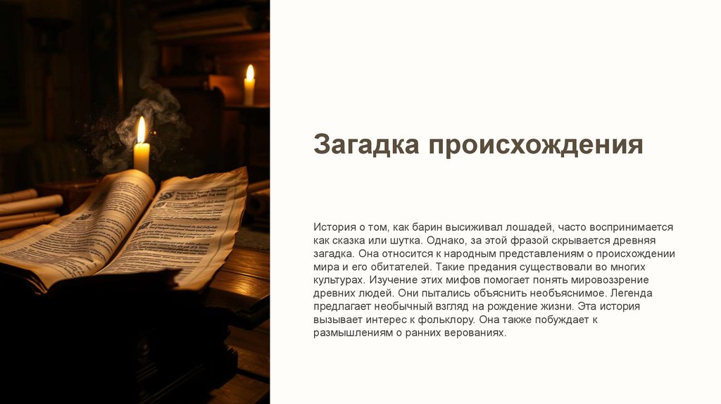 Загадка происхожденияИстория о том, как барин высиживал лошадей, часто воспринимается