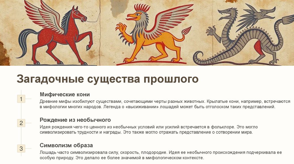Древние мифы изобилуют существами, сочетающими черты разных животных. Крылатые кони, например, встречаются