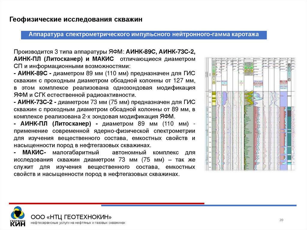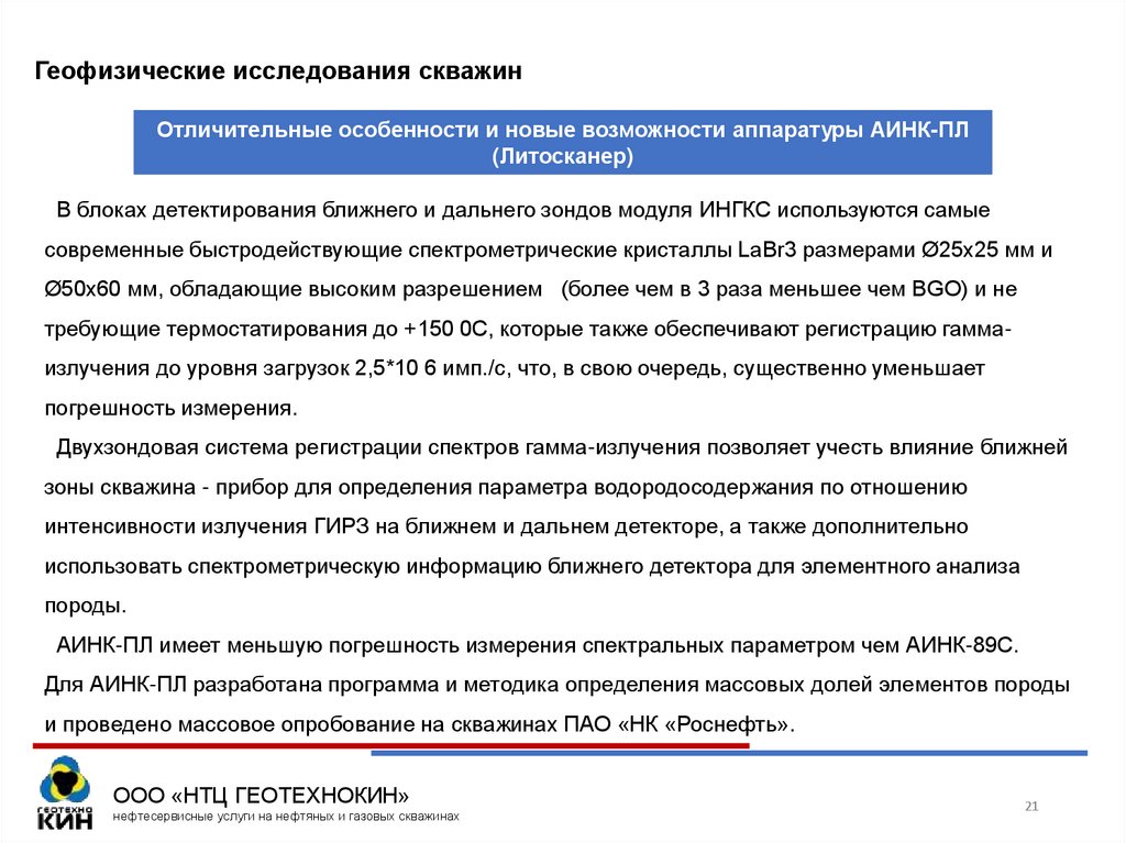 - АИНК-ПЛ (Литосканер) - диаметром 89 мм (110 мм) применение современной ядерно-физической спектрометрии