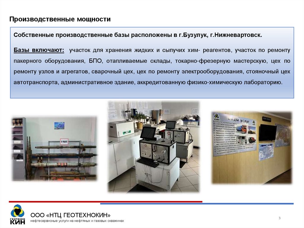 Производственные мощностиООО «НТЦ ГЕОТЕХНОКИН»