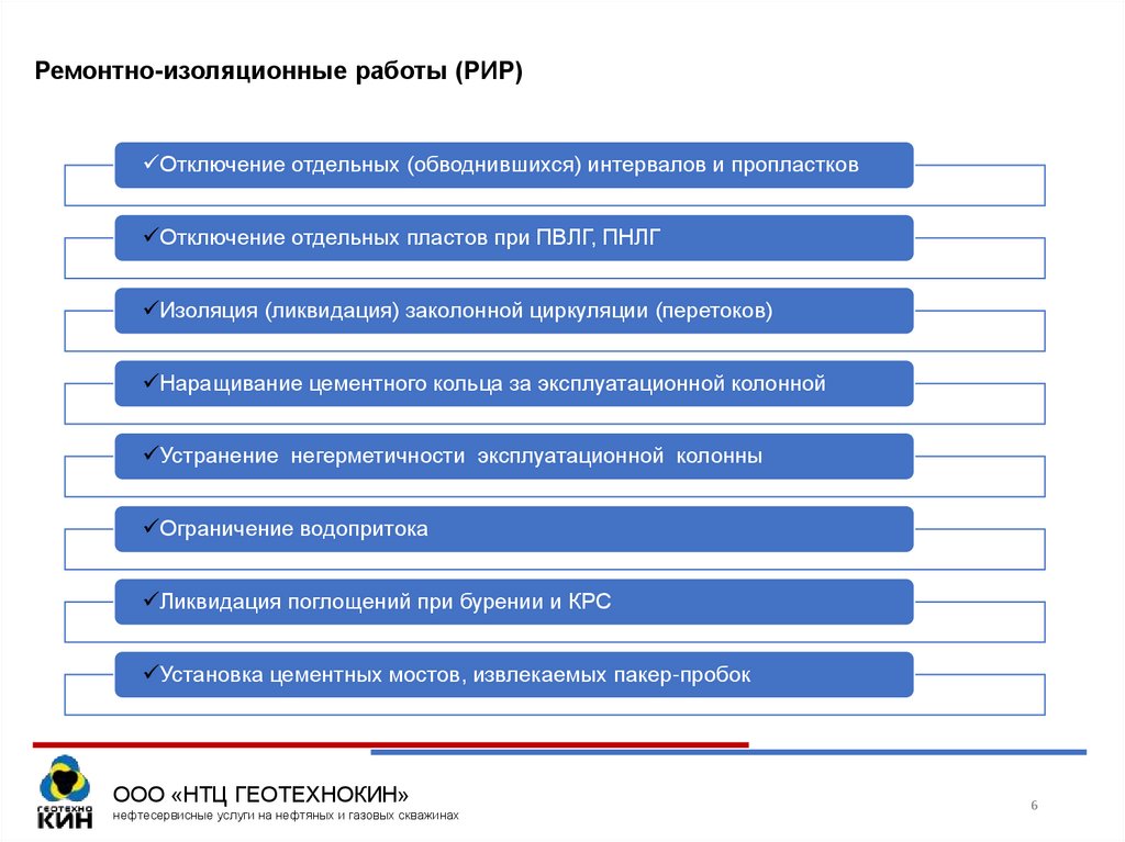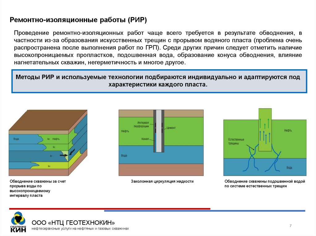 Ремонтно-изоляционные работы (РИР)Проведение ремонтно-изоляционных работ чаще всего требуется в результате обводнения, в