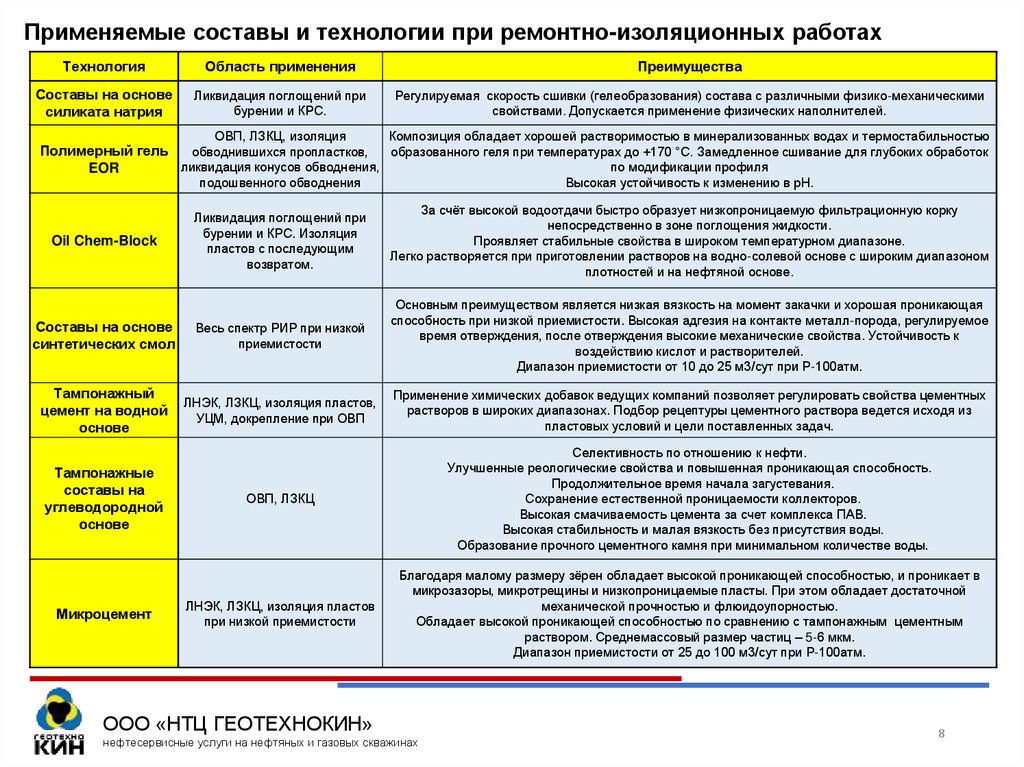 Применяемые составы и технологии при ремонтно-изоляционных работахТехнология