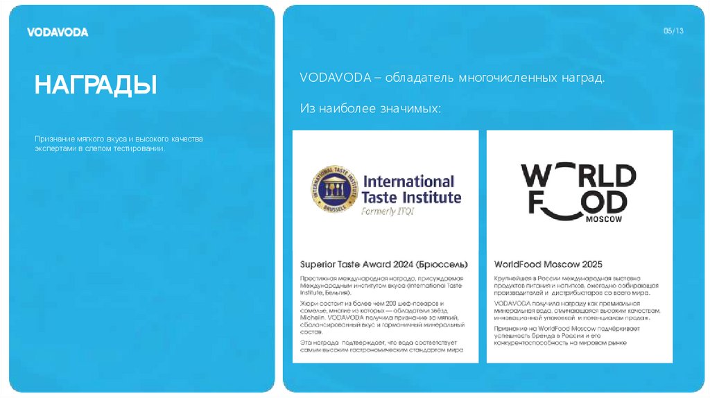 НАГРАДЫПризнание мягкого вкуса и высокого качества