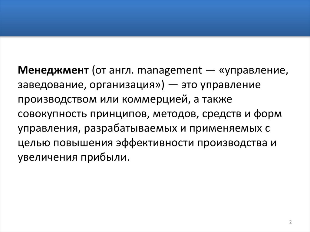 Менеджмент (от англ. management — «управление,заведование, организация») — это управление