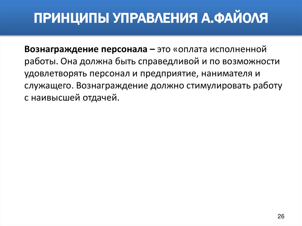ПРИНЦИПЫ УПРАВЛЕНИЯ А.ФАЙОЛЯВознаграждение персонала – это «оплата исполненной
