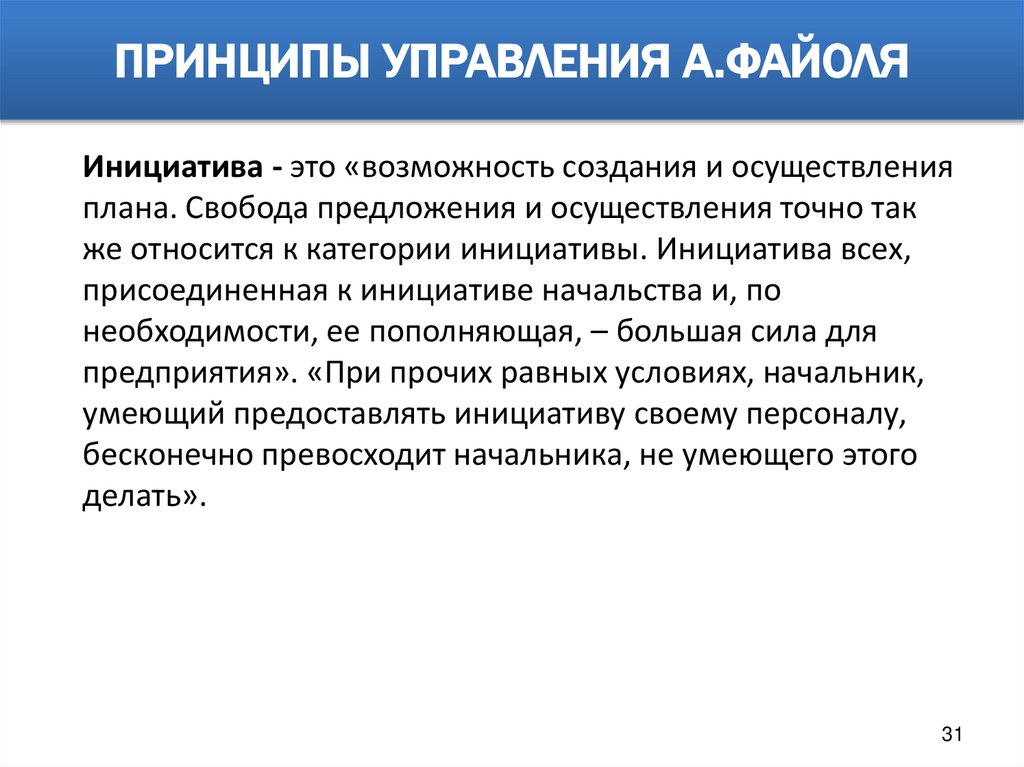 ПРИНЦИПЫ УПРАВЛЕНИЯ А.ФАЙОЛЯИнициатива - это «возможность создания и осуществления