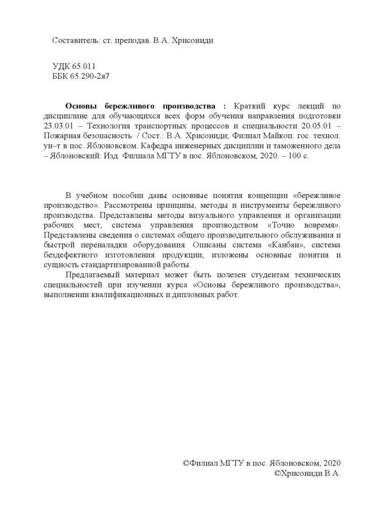 – Яблоновский: Изд. Филиала МГТУ в пос. Яблоновском, 2020. – 100 с.
