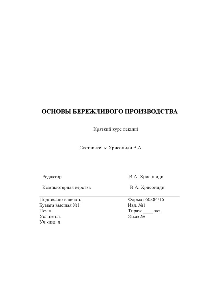 ОСНОВЫ БЕРЕЖЛИВОГО ПРОИЗВОДСТВАКраткий курс лекций