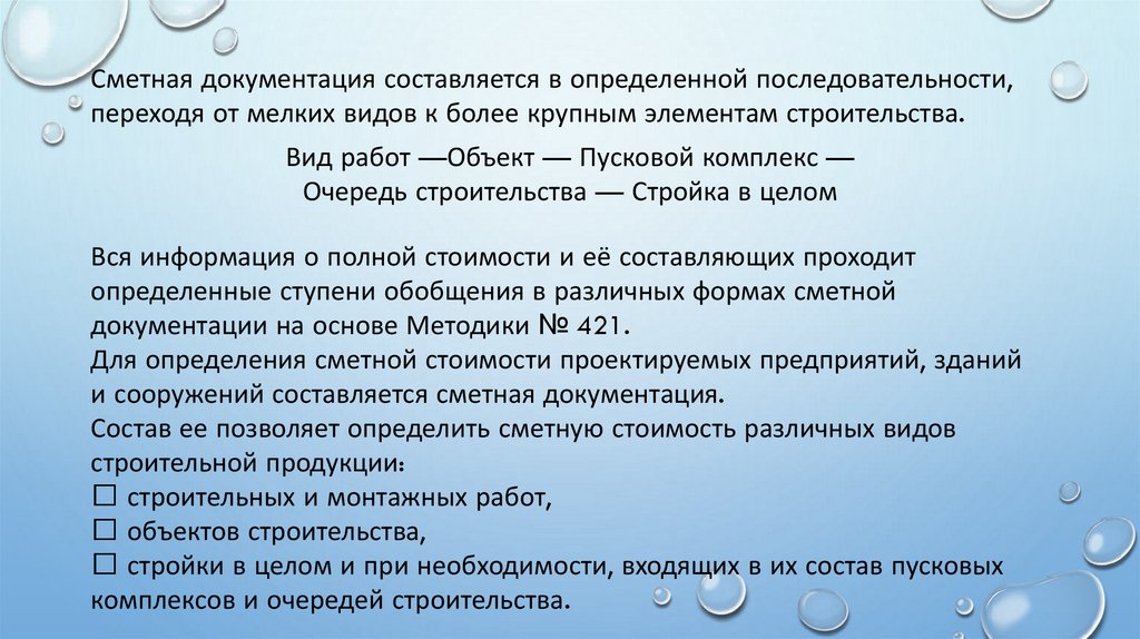 ПОРЯДОК РАЗРАБОТКИ СМЕТНОЙ ДОКУМЕНТАЦИИ УСТАНОВЛЕН МЕТОДИКОЙ № 421 /ПР И