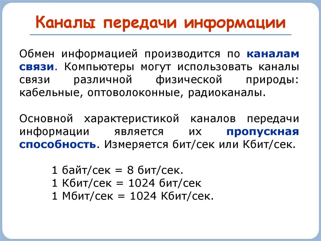 Основной характеристикой каналов передачи