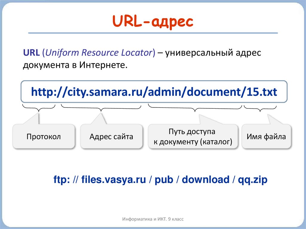 URL-адресURL (Uniform Resource Locator) – универсальный адрес