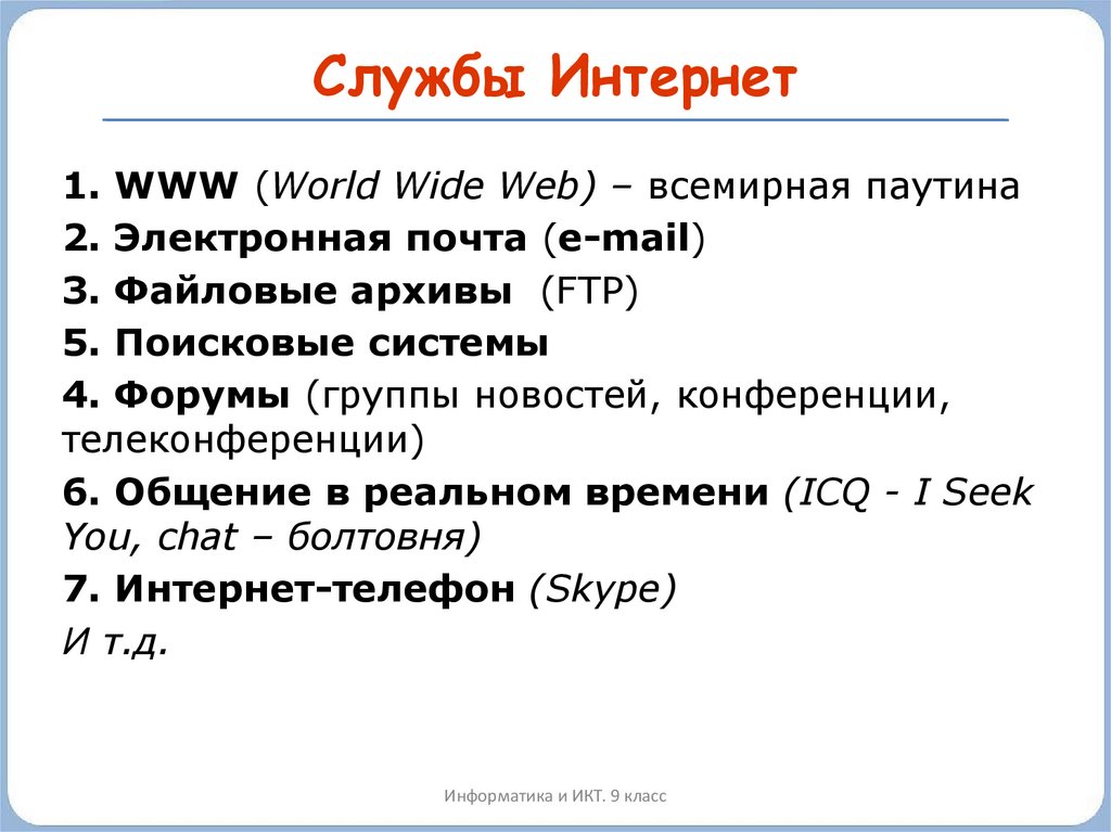 Службы Интернет1. WWW (World Wide Web) – всемирная паутина