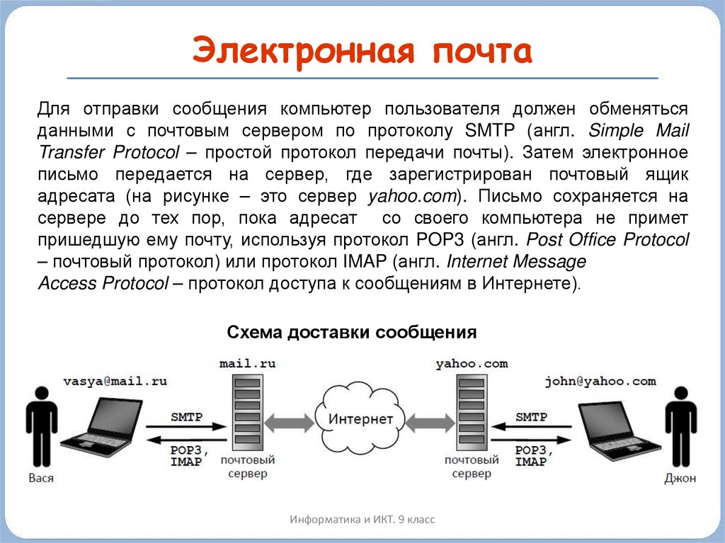 Электронная почтаДля отправки сообщения компьютер пользователя должен обменяться