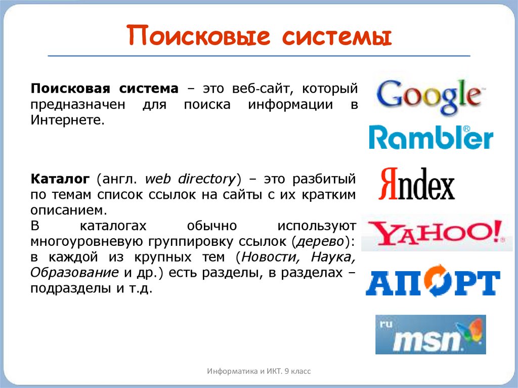 Поисковые системыПоисковая система – это веб‐сайт, который