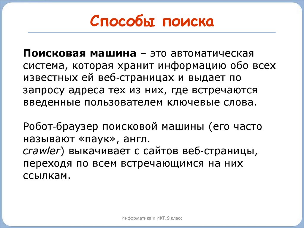 Способы поискаПоисковая машина – это автоматическая