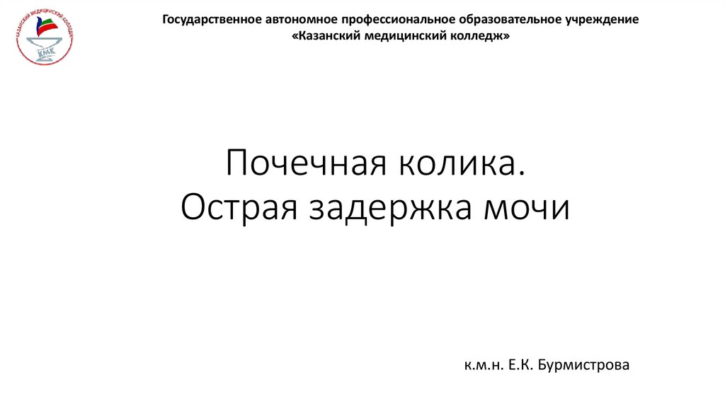1. Почечная колика. Острая задержка мочи