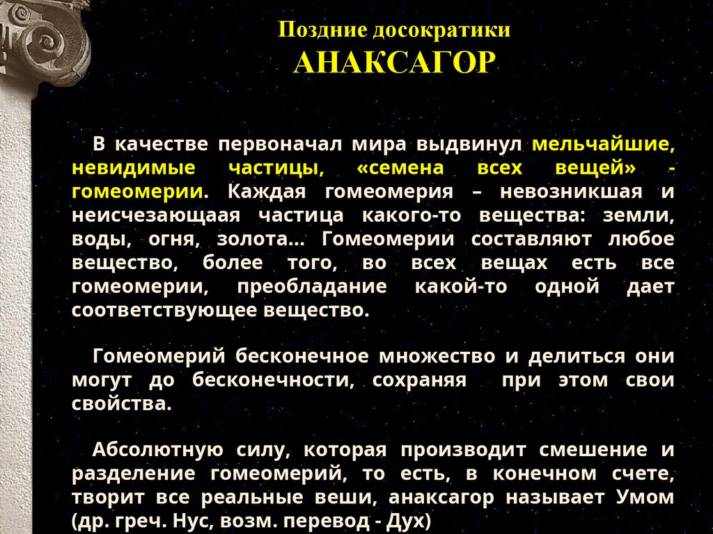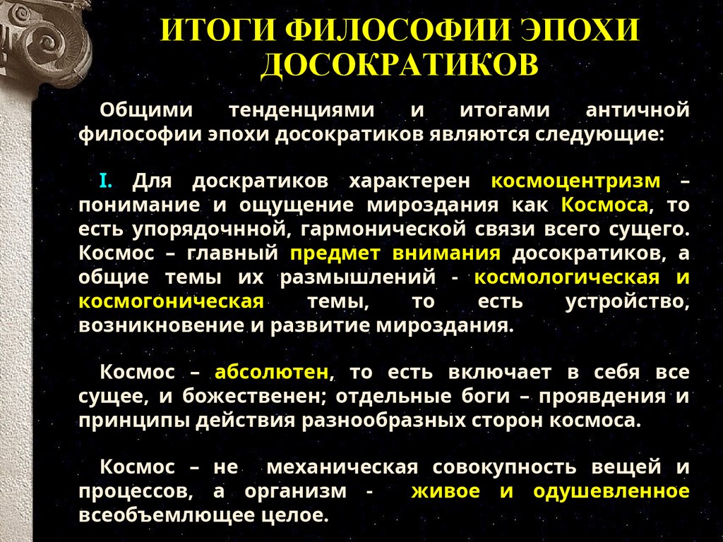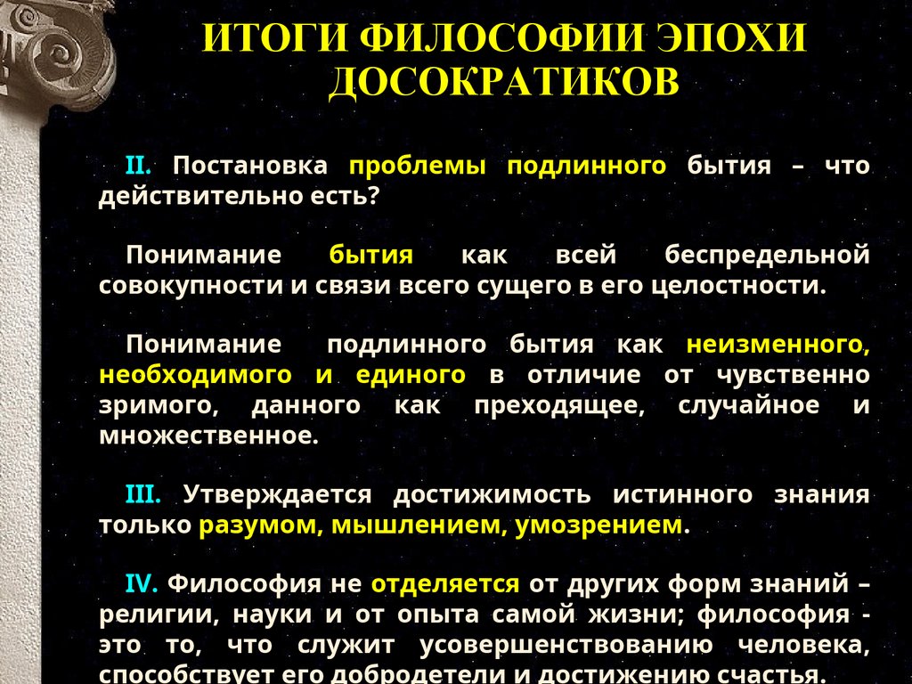 ИТОГИ ФИЛОСОФИИ ЭПОХИДОСОКРАТИКОВ