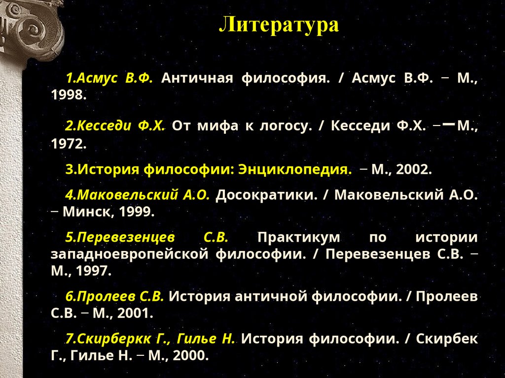 Литература1.Асмус В.Ф. Античная философия. / Асмус В.Ф. − М.,
