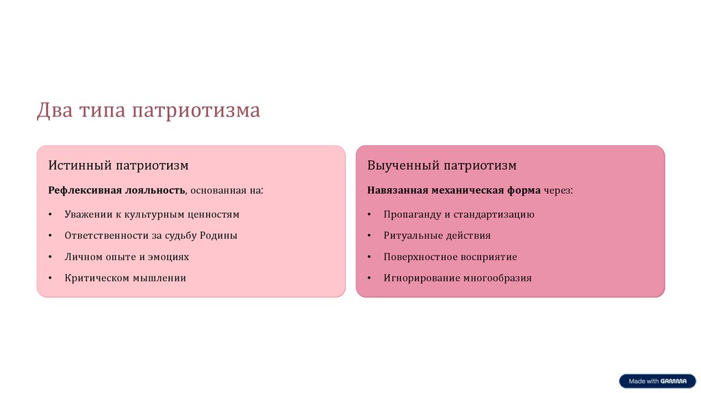 Два типа патриотизмаИстинный патриотизм