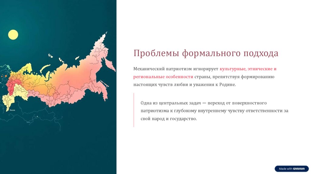 Проблемы формального подходаМеханический патриотизм игнорирует культурные, этнические и