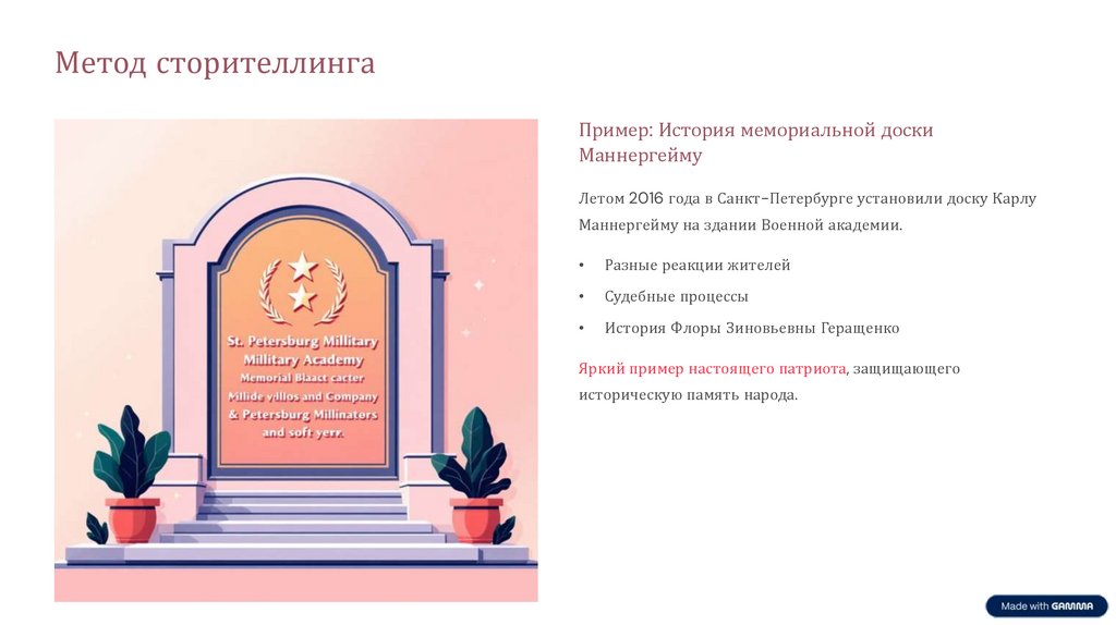Метод сторителлингаПример: История мемориальной доски