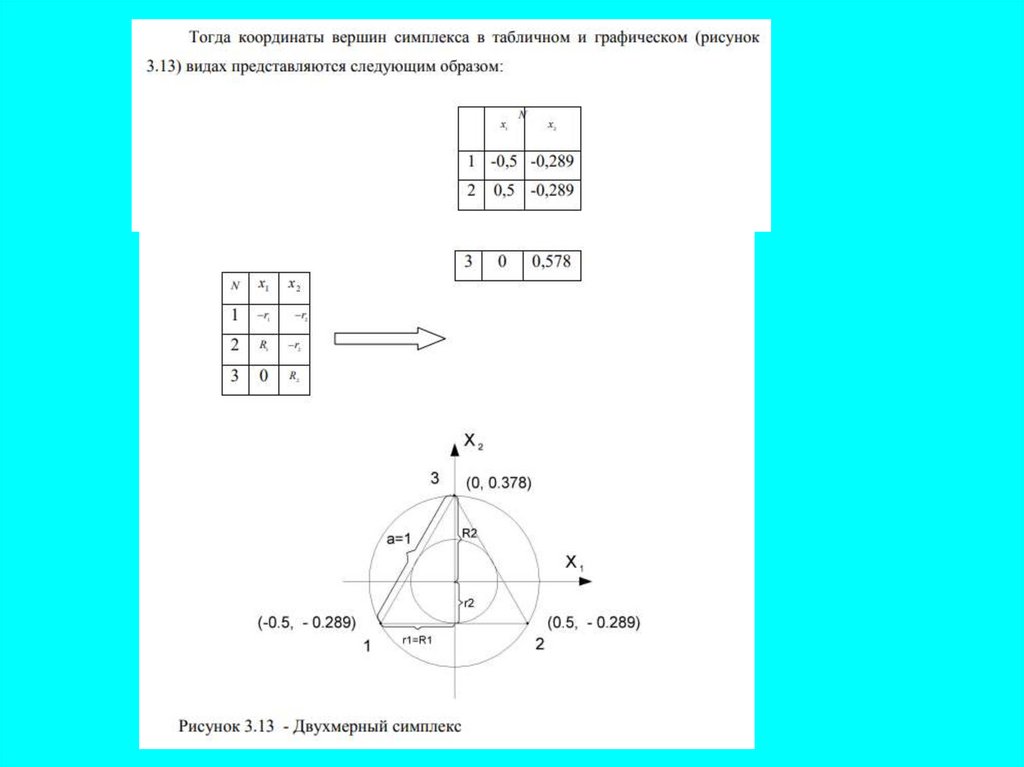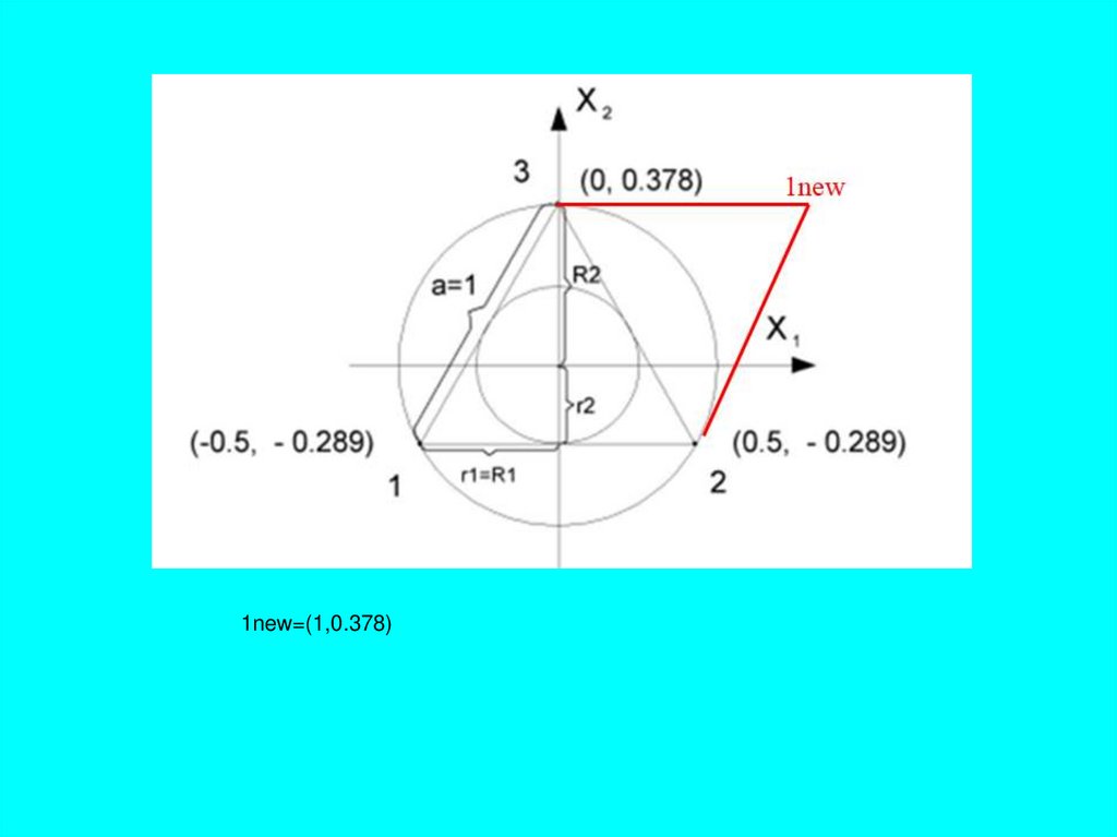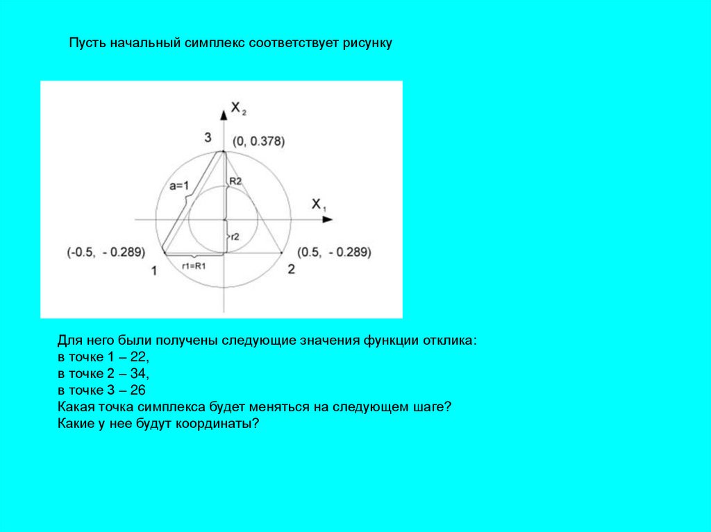 Пусть начальный симплекс соответствует рисункуДля него были получены следующие значения функции отклика: