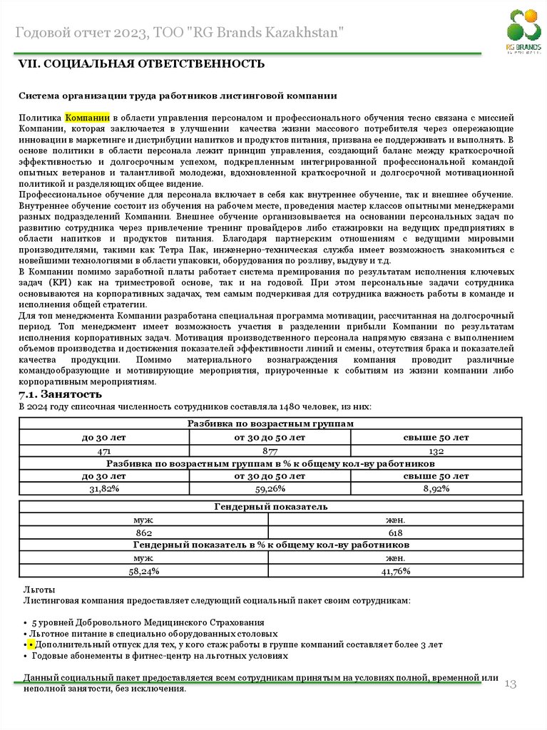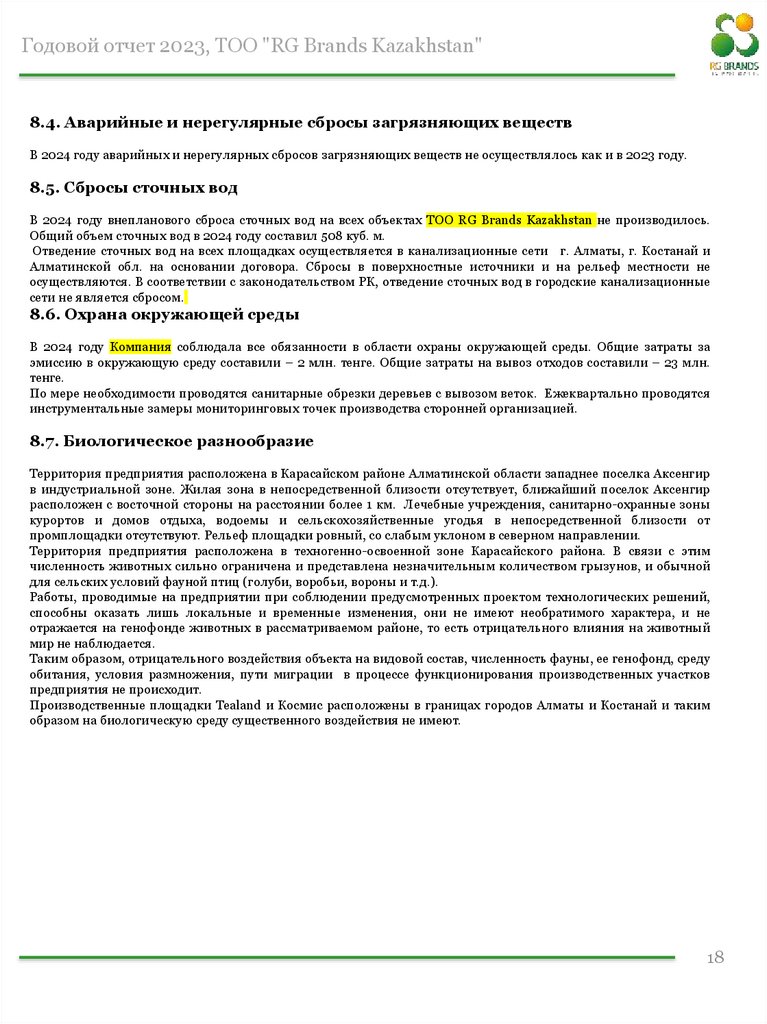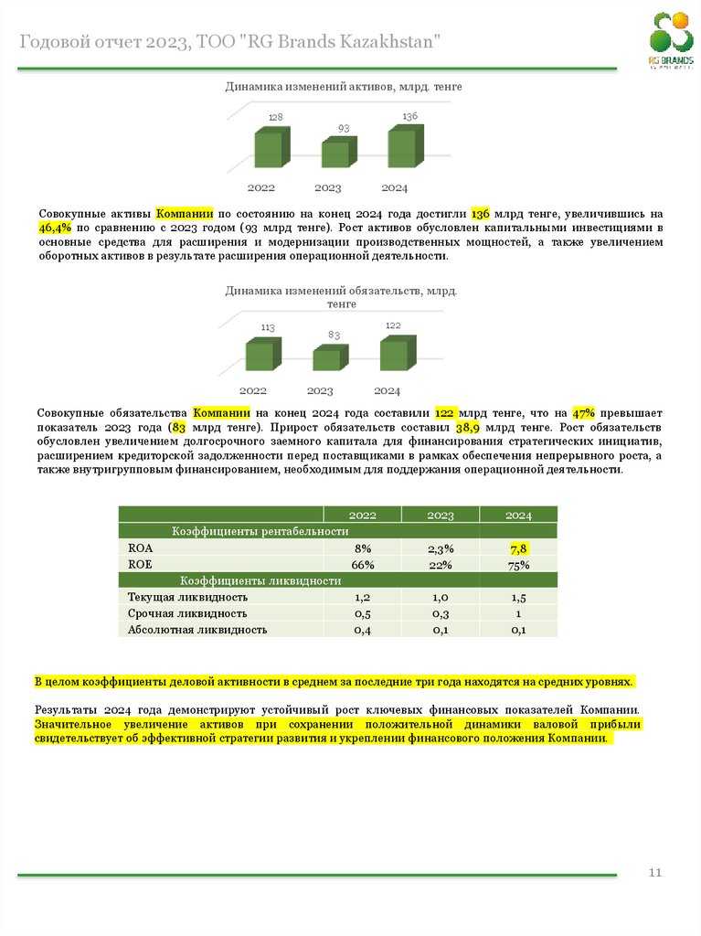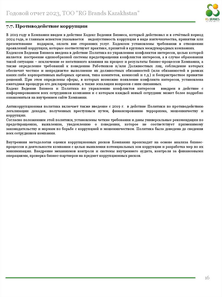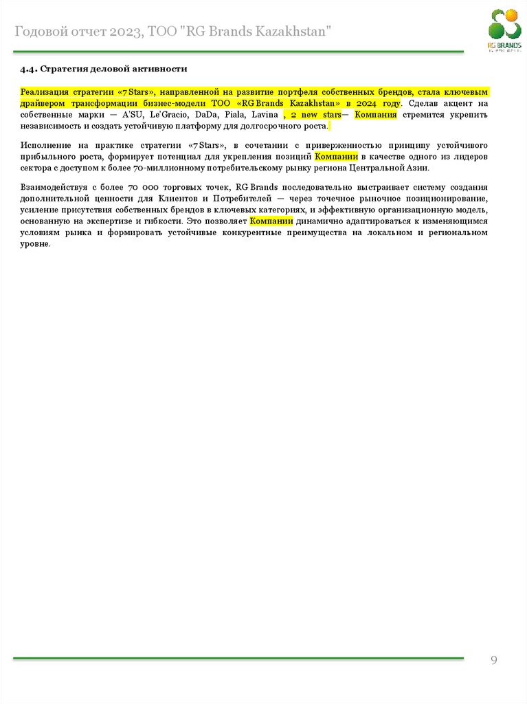 Годовой отчет 2023, ТОО "RG Brands Kazakhstan"Годовой отчет